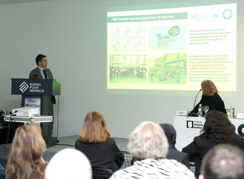 Osmangazi Belediye Başkanı Erkan Aydın, Mimarlar Odası Bursa Şubesi tarafından kentlerin ve mimarlığın günümüz çevresel, sosyal, ekonomik ve teknolojik dönüşüm süreçleri çerçevesinde yeniden değerlendirilmesi amacıyla 24-25 Nisan tarihlerinde Bursa Uluslararası Fuar Merkezi’nde düzenlenen 29. Uluslararası Yapı ve Yaşam Kongresi kapsamındaki “Yerel Yönetimler Vizyon Projeler” oturumuna konuşmacı olarak katıldı. Yerli ve yabancı pek çok akademisyenin bulunduğu, Nilüfer Belediye Başkanı Şadi Özdemir, Gemlik Belediye Başkanı Şükrü Deviren, Mudanya Belediye Başkanı Deniz Dalgıç ve Yıldırım Belediye Başkanı Oktay Yılmaz’ın da yer aldığı oturumda bir sunum gerçekleştiren Osmangazi Belediye Başkanı Erkan Aydın, Osmangazi’de hayata geçirilmesi planlanan projeleri paylaştı.