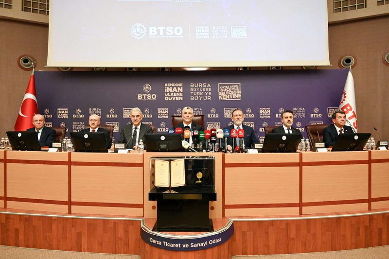 Bursa Ticaret ve Sanayi Odası (BTSO) Nisan Ayı Meclis Toplantısı, BTSO Ana Hizmet Binası’nda gerçekleşti. Toplantının ardından Ticaret Bakanı Prof. Dr. Ömer Bolat, Bursa Valisi Erol Ayyıldız, Bursa Büyükşehir Belediyesi Başkan Vekili Şahin Biba ve BTSO Yönetim Kurulu Başkanı İbrahim Burkay, iş dünyası temsilcileriyle bir araya geldi. Bursa’nın üretim, ticaret ve ihracattaki faaliyetlerinin değerlendirildiği toplantıda, şehri daha ileri taşımak amacıyla istişarelerde bulunuldu.