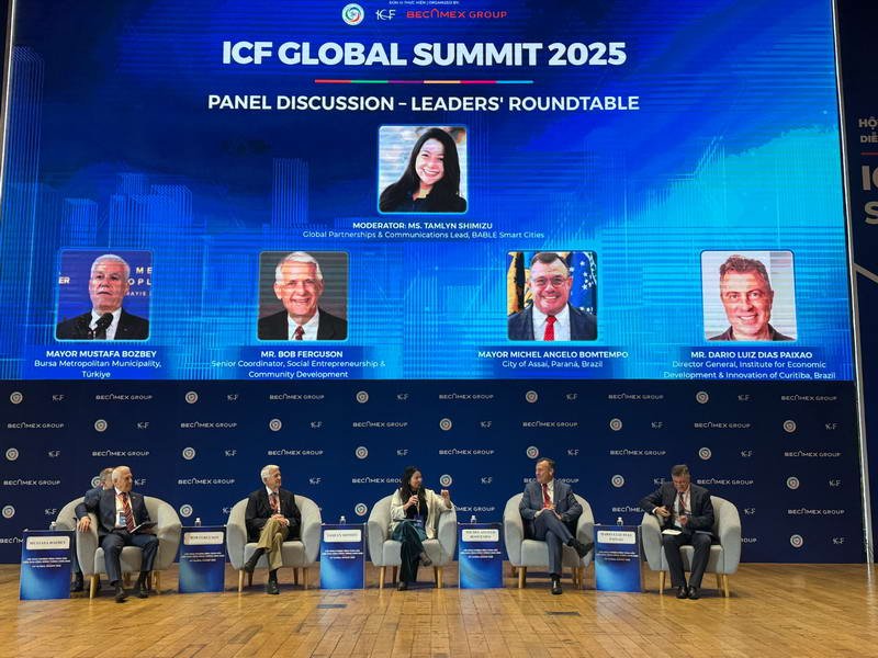 Vietnam’ın Ho Chi Minh City ve Binh Duong bölgelerinde 2–3 Aralık 2025 tarihlerinde düzenlenen ICF Global Summit’te katılan Bursa Büyükşehir Belediye Başkanı Mustafa Bozbey, ‘Top7 Sunumu: Bursa Büyükşehir Belediyesi (Türkiye)’ oturumunda Bursa’nın akıllı şehir vizyonunu, dönüşüm önceliklerini ve örnek uygulamalarını uluslararası paydaşlarla paylaştı. ‘Liderler Yuvarlak Masa’ oturumunda ise Top7 ve Smart21 topluluklarının temsilcileriyle bir araya gelen Başkan Mustafa Bozbey, şehirlerin karşılaştığı zorluklar, iş birliği fırsatları ve yerel yönetimlerin dönüşümdeki rolü üzerine görüş alışverişinde bulundu. Zirve programında ayrıca ‘Denetçi Raporları’ oturumunda ICF Kurucu Ortağı John Jung, ‘Bursa Üzerine’ başlığıyla Bursa’ya ilişkin gözlem ve değerlendirmelerini katılımcılarla paylaştı.