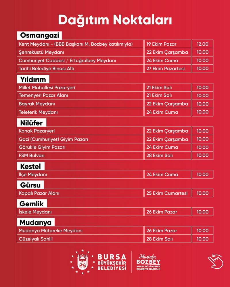 Yağmura rağmen poster dağıtım etkinliğine yoğun ilgi gösteren vatandaşlarla sohbet eden Başkan Mustafa Bozbey, Cumhuriyet’in en büyük ortak değer olduğunu vurgulayarak, “17 ilçemizde 60 bin civarında Ata posteri dağıtıyoruz. Vatandaşlarımız iş yerlerini ve evlerini bu bayraklarla donacaktır. Cumhuriyet coşkusunun her yerde hissedilmesini sağlamalıyız. Cumhuriyet, bizlere Ulu Önder Mustafa Kemal Atatürk’ün en büyük armağanıdır. Bu armağana sahip çıkmak, onun ilke ve devrimlerini yaşatmak hepimizin en temel sorumluluğudur. Cumhuriyet Bayramı’nı coşkuyla kutlamak, aynı zamanda birlik, beraberlik ve umut duygularımızı tazelemektir. Bursa, her zaman olduğu gibi bu yıl da Cumhuriyetine sahip çıkıyor. Şimdiden Cumhuriyet Bayramımızı kutluyorum” dedi.