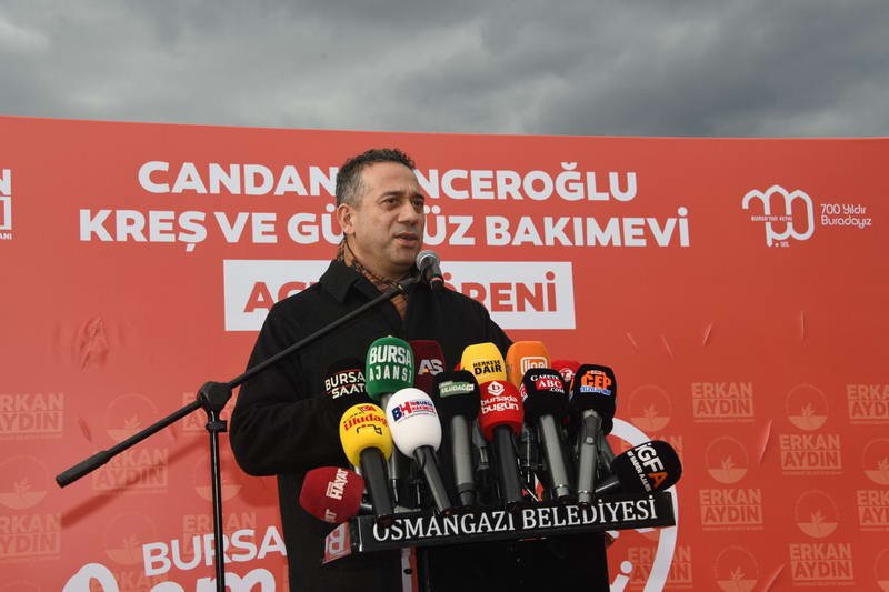 Çocukların güvenli, çağdaş ve nitelikli ortamlarda eğitim almasının büyük önem taşıdığını vurgulayan Osmangazi Belediye Başkanı Erkan Aydın, konuşmasına şu şekilde devam etti: “Birlikte görev yaptığımız partimizin Türkiye Büyük Millet Meclisi’ndeki gururu mücadelesiyle bütün herkesin haklarını savunmasıyla hepimize güzel örnek olan değerli dostum Ali Mahir Başarır, açılışımıza katıldığı için çok teşekkür ediyorum. Şuanda 4’üncü kreşimizin açılışını yapmaktayız. Bir tanesinin daha yapımı bitti onunda bir kaç hafta içinde açılışını yapacağız. Bir diğerinin de Şubat Mart gibi açılışını yapmayı düşünüyoruz. 2 yılda toplam 6 kreşe ulaşmış olacağız. 4 tane kreşimizin de hafriyat işlemleri bitti temel atmasını yaparak bir daha ki yıl