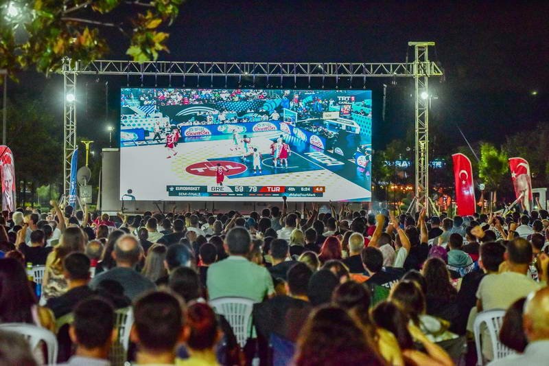 Avrupa Basketbol Şampiyonası (EuroBasket 2025) yarı finalinde Yunanistan’ın 94-68 skorla yenerek 24 yıl aradan sonra finale çıkma başarısı gösteren A Milli Erkek Basketbol Takımı’nın tarihi mücadelesi, Büyükşehir Belediyesi tarafından kurulan dev ekranda Bursalılar tarafından büyük bir heyecanla takip edildi.
