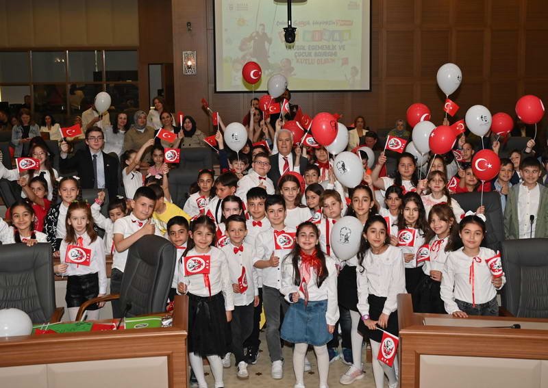 23 Nisan Ulusal Egemenlik ve Çocuk Bayramı ile TBMM’nin açılışının yıl dönümü kutlamaları kapsamında ‘Bursa Büyükşehir Belediye Meclisi Çocuk Oturumu’ Başkan Bozbey’in katılımıyla gerçekleşti. Bursa Büyükşehir Belediye Başkanı Mustafa Bozbey’in koltuğuna oturan Bursa Kent Konseyi Çocuk Meclisi Başkanı Yağız Vatansever ve Çocuk Meclisi yürütme kurulu üyesi İnci Bade Yiğit, çocuklar adına oturum başlangıç konuşmasını gerçekleştirdi.