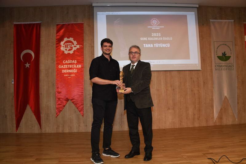 Çağdaş Gazeteciler Derneği (ÇGD) Bursa Şube Başkanı Tayfun Çavuşoğlu, sunuculuğunu Sevda Kurul ve Hatice Nur Derya’nın yaptığı ödül törenindeki konuşmasında, gerçeğin peşinden koşmanın ağır bedeller gerektirdiğine işaret ederek, “Bu zorlu dönemde, mesleki dayanışmamızı göstermek ve basın özgürlüğü mücadelesini bir kez daha haykırmak için bir aradayız. Gazeteciliğin, demokrasinin temel direği olduğu bilinciyle; halkın haber alma hakkını savunmak, sadece gazetecilerin hakkı ya da görevi değil, aynı zamanda demokratik ve sağlıklı bir toplumun hava koşulu gibidir. Türkiye’de gazetecilik, ne yazık ki 2025 yılı itibarıyla ağır baskı altında nefes almaya çalışmaktadır” dedi.