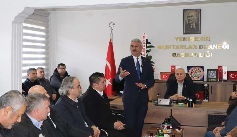 Yenişehir Muhtarlar Derneği ziyareti ile de mahallelerin sorunları masaya yatırıldı. Yeşiltaş, muhtarların beklentilerini dinlerken çözüm için ortak akılla çalışmalarını sürdüreceklerini ifade etti.