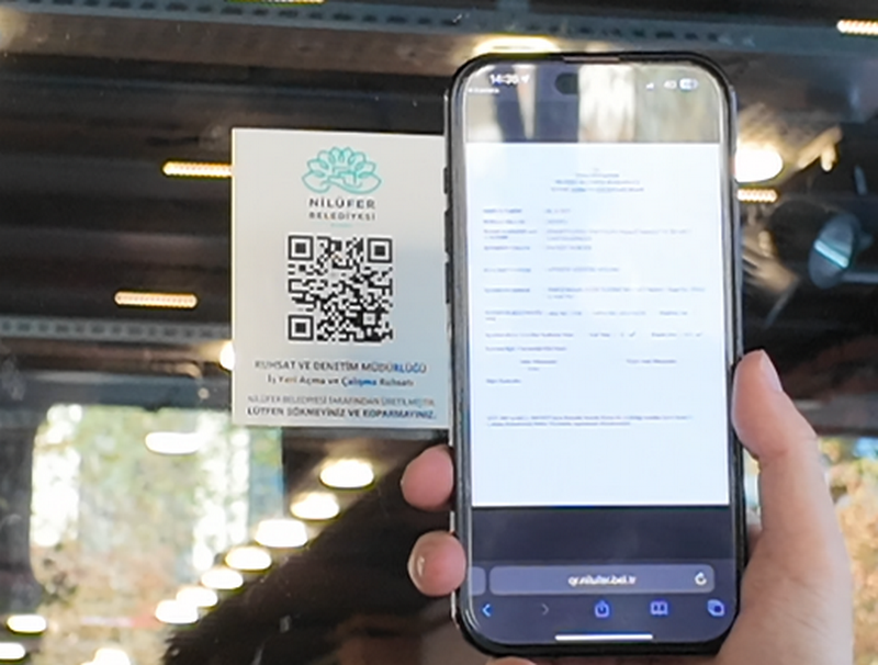Nilüfer Belediyesi, işyeri ruhsat süreçlerini dijitalleştirerek vatandaşların/kolluk kuvvetlerinin bilgiye erişimini kolaylaştırdı. Bu yılın Aralık ayı itibari ile işyerlerine yerleştirilen QR kodlar sayesinde ruhsatlı işyerlerinin bilgileri tek dokunuşla görüntülenebiliyor.