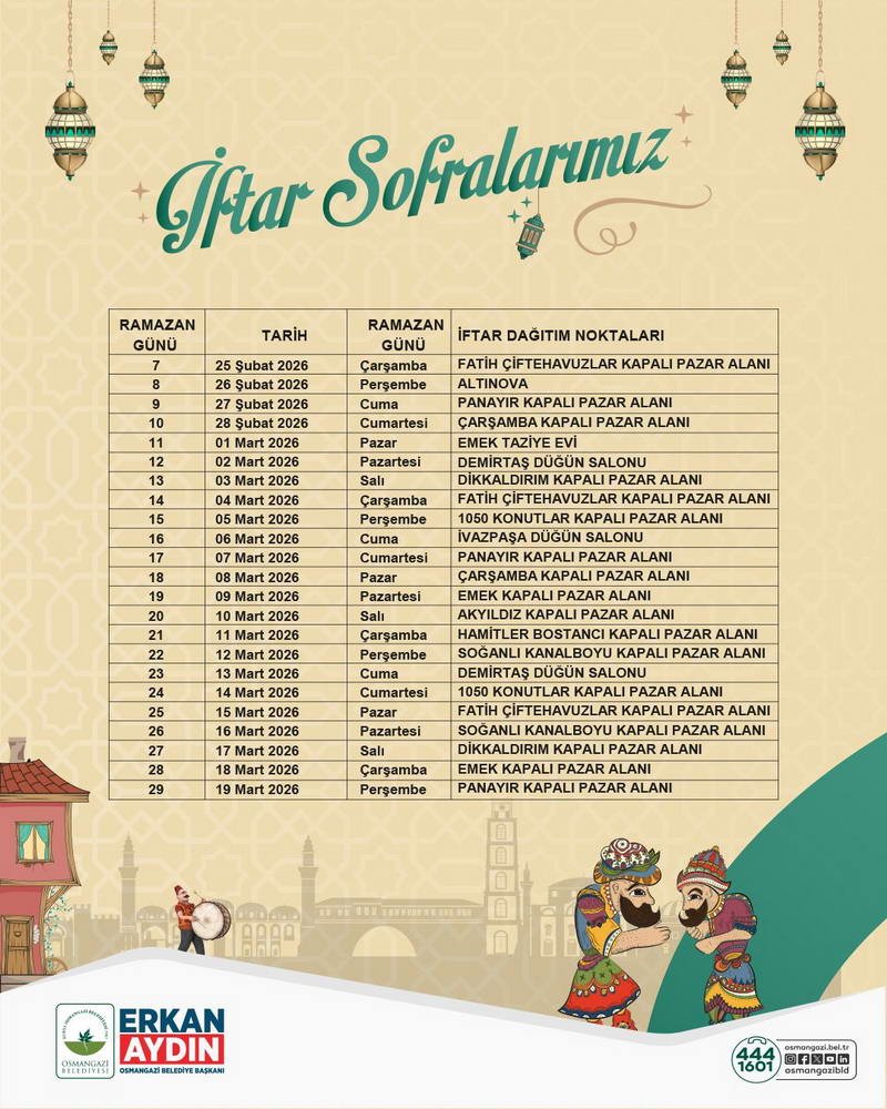 Osmangazi Belediyesi, Ramazan ayı boyunca düzenlediği bu kapsamlı programla, vatandaşları aynı sofranın, aynı duanın ve aynı sevinçlerin etrafında buluşturmayı amaçlıyor.