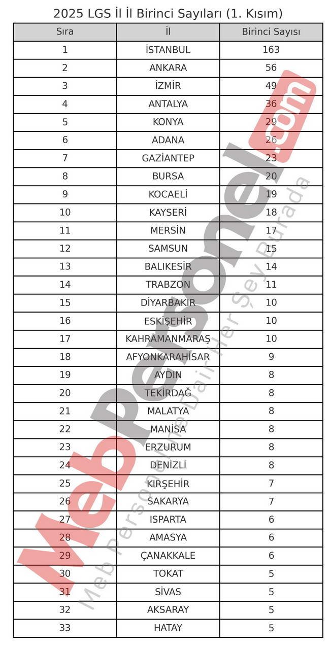 Bu 10 il, Türkiye genelindeki tüm birincilerin yaklaşık yüzde 61’ini oluşturan 439 birinci çıkardı. Ancak Eğitim-İş’in ortaya koyduğu bu çelişkili veriler, LGS sonuçlarına yönelik tartışmaları yeniden alevlendirdi.