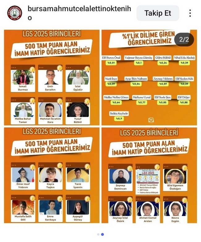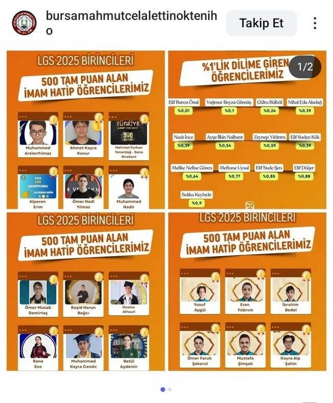 “Sayın @Yusuf__Tekin Bursa Yıldırım’da bir İmam Hatip Ortaokulu’ndan 39 öğrenci tam puan almış! Oysa birçok kaynakta Bursa il genelinde 20 tam puan alan öğrenci olduğu ifade ediliyor. Sadece bu okuldan 39 tam puan çıkmışsa 719 sayısı aldatmaca olabilir mi?