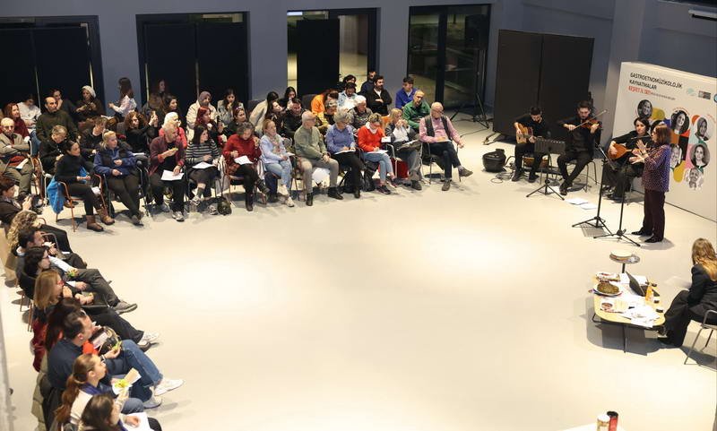 Etkinliğin en dikkat çekici bölümünde ise duyusal bir deneyim yaşandı. Ratatuy, Neşeli Günler, Tosun Paşa, Muhsin Bey ve Chocolat gibi unutulmaz filmlerden kesitler izlenirken; sahnelerde görülen çiğ köfte, kuru fasulye, boza ve çikolata gibi lezzetler katılımcılara ikram edildi. İzleyiciler, dinledikleri müzikler ile tattıkları lezzetler arasındaki bağı keşfetmek için hazırlanan anketleri doldurarak deneyimlerini paylaştı.