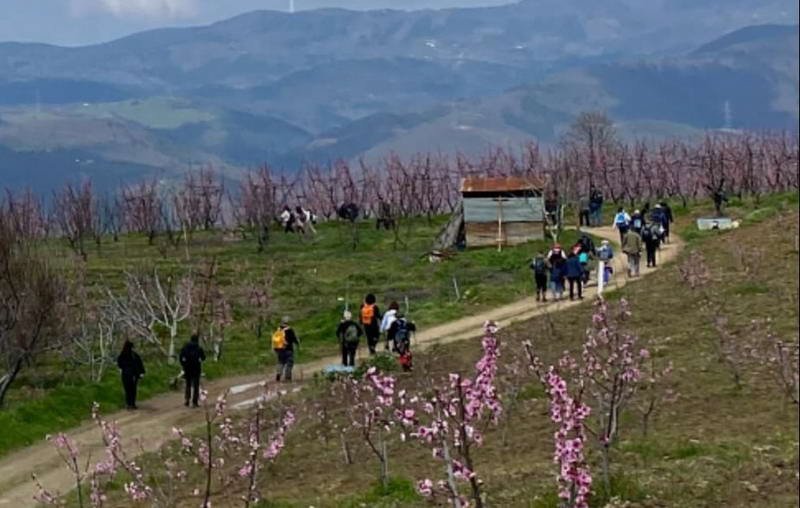 Sabah saatlerinde güneşli ve açık bir havada başlayan yürüyüş, daha ilk adımlardan itibaren katılımcılara adeta bir bahar masalı yaşattı. Tacir Köyü çevresindeki doğa yolları, baharın habercisi olan sakura çiçekleriyle bezenmiş görüntüsüyle yürüyüşe katılan herkesi büyüledi.