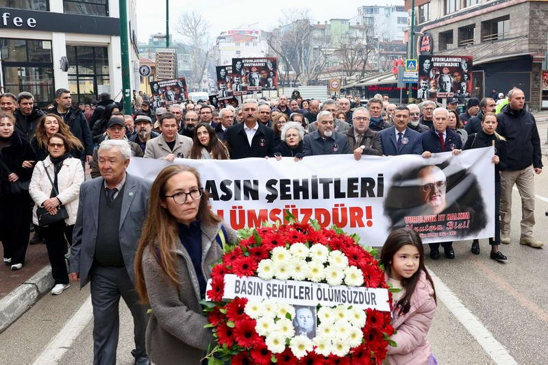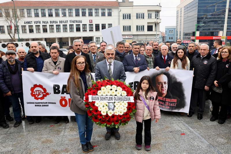 Törende Çağdaş Gazeteciler Derneği (ÇGD) Bursa Şubesi Başkanı Tayfun Çavuşoğlu tarafından bir basın açıklaması gerçekleştirildi. Tören kapsamında ayrıca Anadolu Gazeteciler ve Spor Yazarları Derneği (ASGD) Genel Başkanvekili Yüksel Baysal ile Türkiye Spor Yazarları Derneği (TSYD) Bursa Şube Başkanı Mehmet Ali Ekmekçi de birer selamlama konuşması yaparak günün anlam ve önemine değindi. Atatürk Anıtı’na kurumlar adına çelenk sunumu gerçekleştirildi. Katılımcılar, Uğur Mumcu çelenginin çevresini kırmızı karanfillerle donattı. Uğur Mumcu’ya saygı çelengini Gazeteci Günnur Ataokay ile kızı Ada Ataokay birlikte taşıdı.